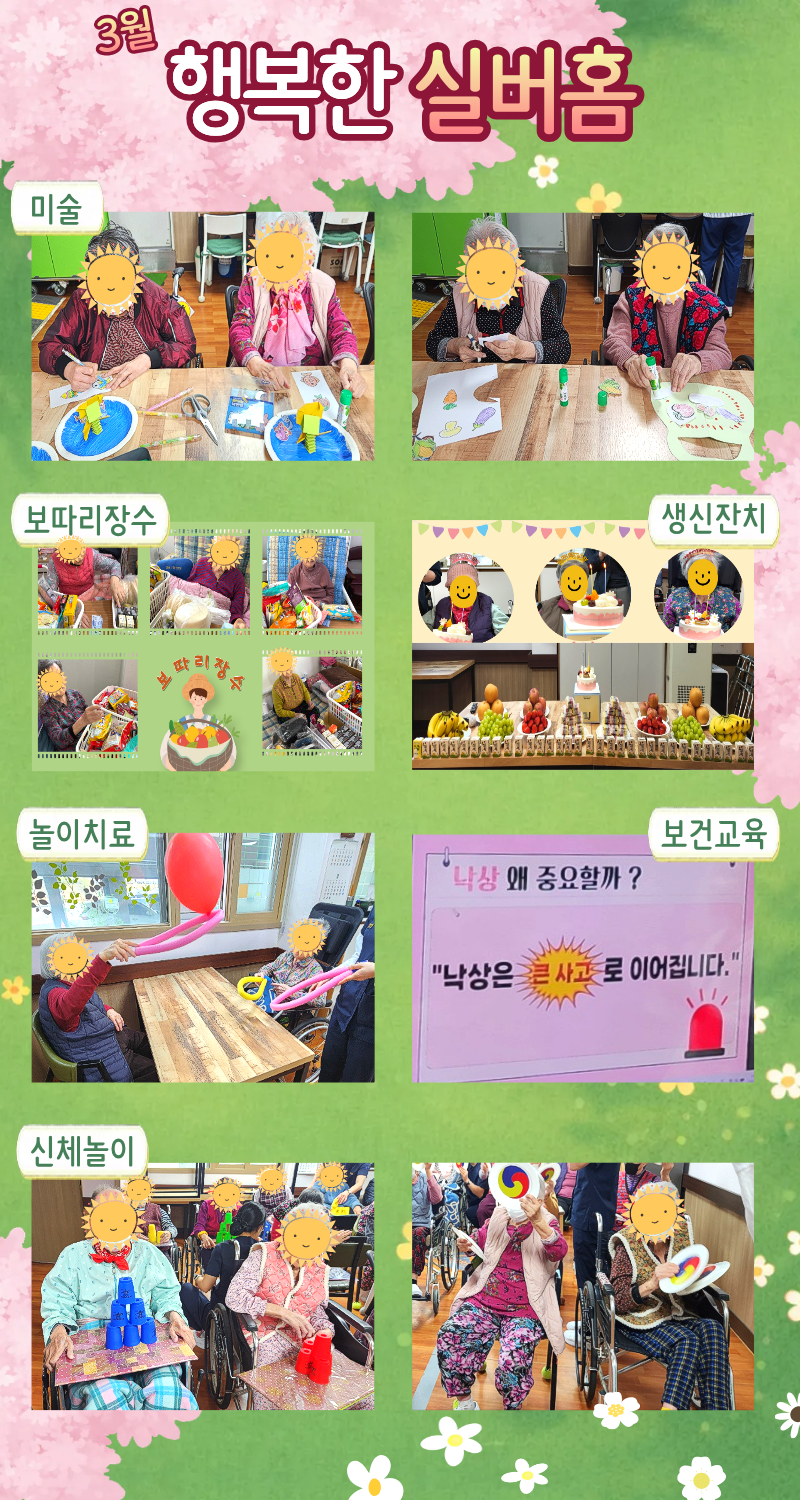 화사하고 예쁜 봄 꽃들이 피어나는 3월의 행복한 실버홈을 담은 소식지 입니다.